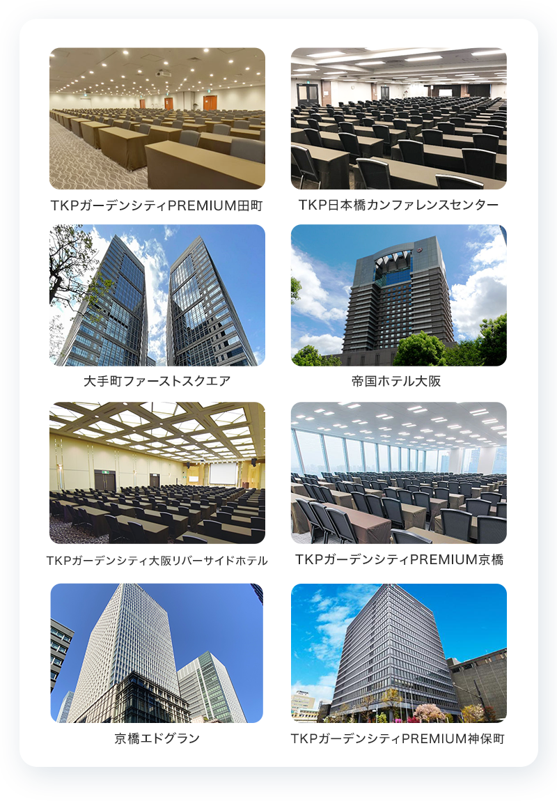 以下のようなセミナー会場で運用実績があります。 また、新型ウィルスの状況などを踏まえ、適宜オンラインでも開催しています。