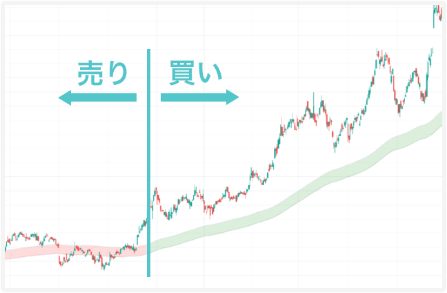 世間一般では、エントリーが 一番難しい要素と言われています。 トレードの勝敗がほぼ決まるからです。 このツールなら、トレンドの転換から 売買ポイントを絞り込めます。 投資初心者でも今チャートが ・トレンドの初動なのか? ・買い方向か売り方向か? をひと目で判断できるようになっています。