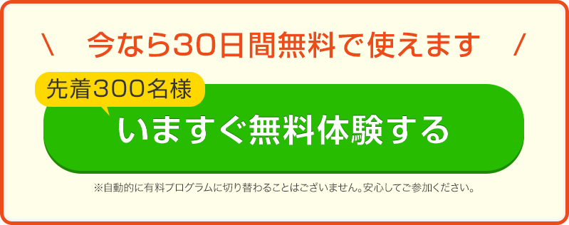 実際に、無料ツール(トレンドサイン)をお試しください。 ツールのご登録から30日間は何度でもご利用いただけます。 無料期間が過ぎて、継続的なご利用をご希望の場合は「継続プラン」へのお申込みをご検討ください。 ※継続プランは税込3,000円/月で、いつでも利用停止できます。 ※成果には個人差があり、成果を保証するものではありません。